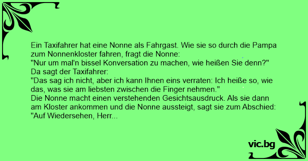 Ein Taxifahrer hat eine Nonne als Fahrgast. Wie sie so durch die Pampa zum Nonnenkloster fahren, fragt die Nonne: