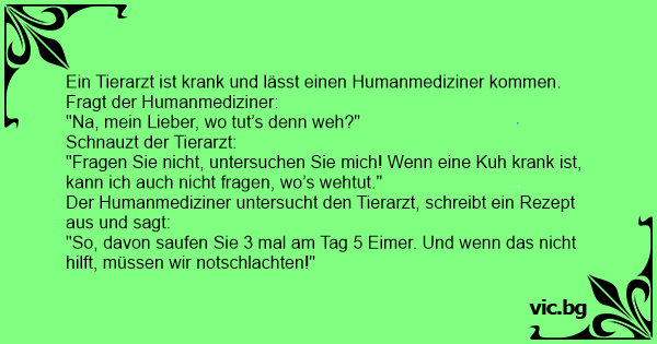 Der Humanmediziner untersucht den Tierarzt, schreibt ein Rezept aus und sagt: