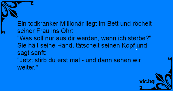Ein todkranker Millionär liegt im Bett und röchelt seiner Frau ins Ohr: