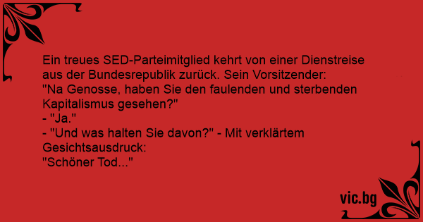 "Na Genosse, haben Sie den faulenden und sterbenden Kapitalismus gesehen?"