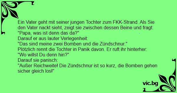 Ein Vater geht mit seiner jungen Tochter zum FKK-Strand. Als Sie den Vater nаскт sieht, zeigt sie zwischen dessen Beine und fragt: