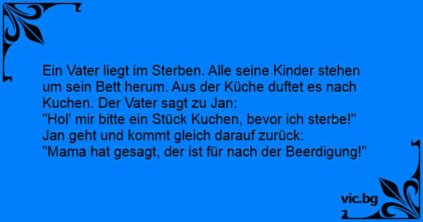 "Hol' mir bitte ein Stück Kuchen, bevor ich sterbe!"