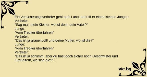 Ein Versicherungsvertreter geht aufs Land, da trifft er einen kleinen Jungen.