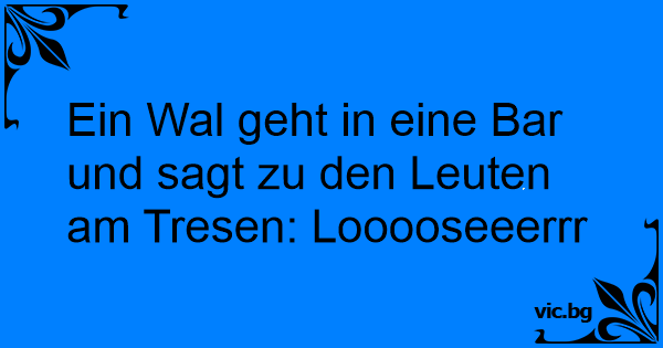 Ein Wal geht in eine Bar und sagt zu den Leuten am Tresen: Looooseeerrr