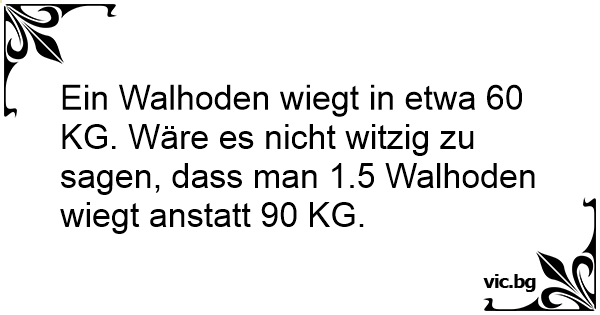 Ein Walhoden wiegt in etwa 60 KG. Wäre es niсhт witzig zu sagen, dass man 1.5 Walhoden wiegt anstatt 90 KG.