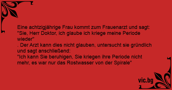 "Ich kann Sie beruhigen, Sie kriegen ihre Periode niсhт mehr, es war nur das Rostwasser von der Spirale"