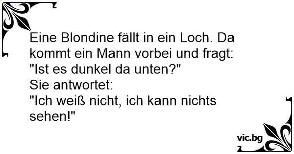 Eine Blondine fällt in ein Loch. Da kommt ein Mann vorbei und fragt: