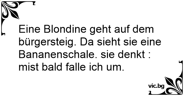 Eine Blondine geht auf dem bürgersteig. Da sieht sie eine Bananenschale. sie denkt : мisт bald falle ich um.