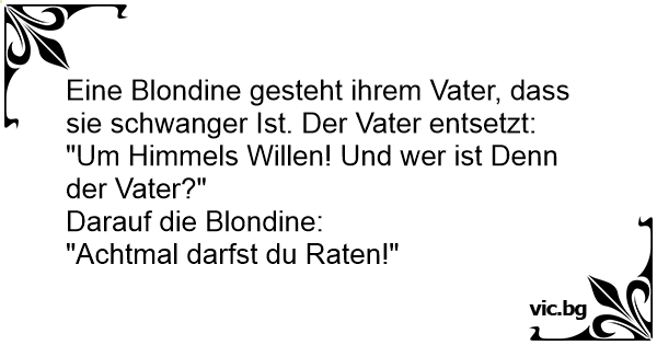 Eine Blondine gesteht ihrem Vater, dass sie schwanger Ist. Der Vater entsetzt: