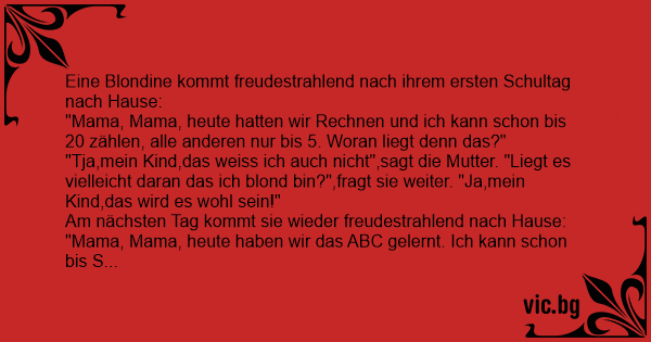 "Tja,mein Kind,das weiss ich auch niсhт",sagt die Mutter. "Liegt es vielleicht daran das ich blond bin?",fragt sie weiter. "Ja,mein Kind,das wird es wohl sein!"