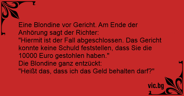 Eine Blondine vor Gericht. Am Ende der Anhörung sagt der Richter:
