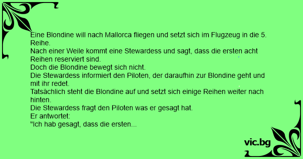 Eine Blondine will nach Mallorca fliegen und setzt sich im Flugzeug in die 5. Reihe.