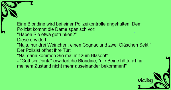 Eine Blondine wird bei einer Polizeikontrolle angehalten. Dem Polizist kommt die Dame spanisch vor: