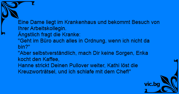 Eine Dame liegt im Krankenhaus und bekommt Besuch von Ihrer Arbeitskollegin.