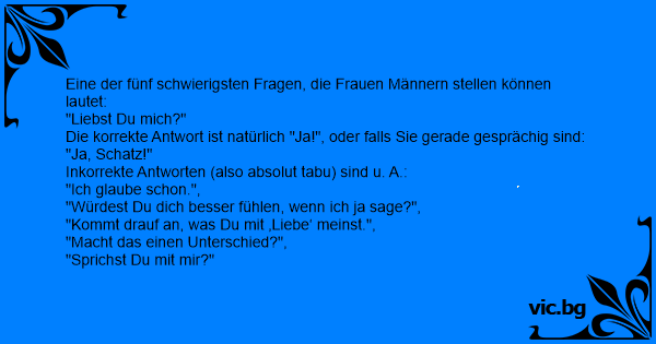 Eine der fünf schwierigsten Fragen, die Frauen Männern stellen können lautet: