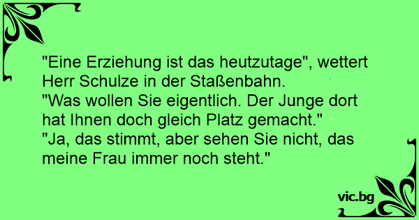 "Eine Erziehung ist das heutzutage", wettert Herr Schulze in der Staßenbahn.