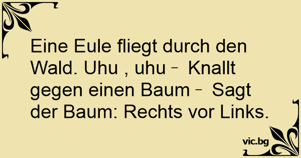 Eine Eule fliegt durch den Wald. Uhu , uhu Knallt gegen einen Baum Sagt der Baum: Rechts vor Links.