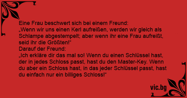 „Ich erkläre dir das mal so! Wenn du einen Schlüssel hast, der in jedes Schloss passt, hast du den Master-Key. Wenn du aber ein Schloss hast, in das jeder Schlüssel passt, hast du einfach nur ein billiges Schloss!“