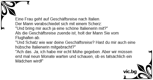 "Und Schatz wie war deine Geschäftsreise? Hast du mir auch eine hübsche Italienerin mitgebracht?"