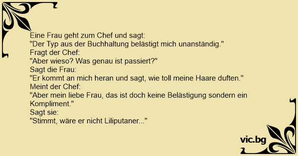 "Aber mein liebe Frau, das ist doch keine Belästigung sondern ein Kompliment."