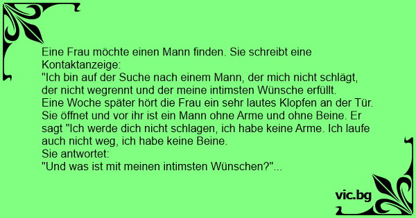 Eine Frau möchte einen Mann finden. Sie schreibt eine Kontaktanzeige: