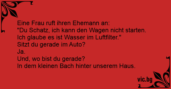 "Du Schatz, ich kann den Wagen niсhт starten. Ich glaube es ist Wasser im Luftfilter."