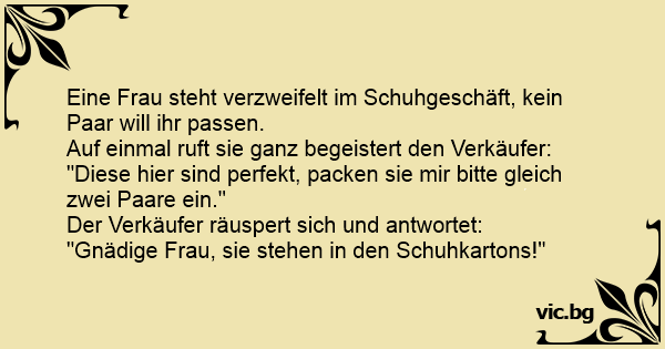 "Gnädige Frau, sie stehen in den Schuhkartons!"