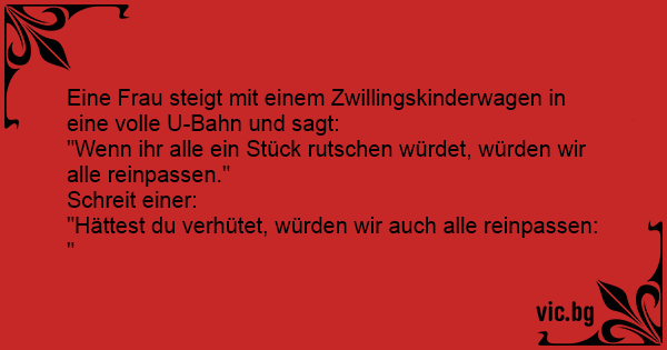 Eine Frau steigt mit einem Zwillingskinderwagen in eine volle U-Bahn und sagt: