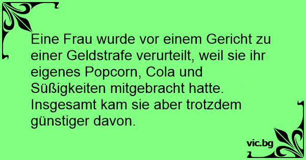 Eine Frau wurde vor einem Gericht zu einer Geldstrafe verurteilt, weil sie ihr eigenes Popcorn, Cola und Süßigkeiten mitgebracht hatte. Insgesamt kam sie aber trotzdem günstiger davon.