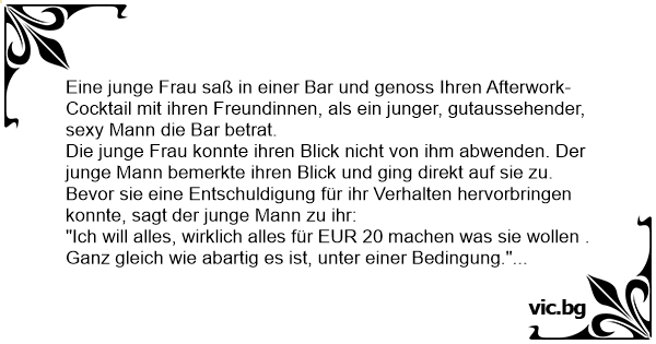 Die junge Frau fragte verblüfft, was denn die Bedingung sei und der junge Mann antwortete: