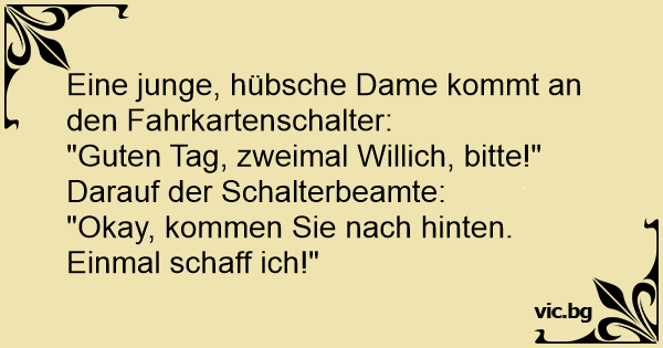 Eine junge, hübsche Dame kommt an den Fahrkartenschalter: