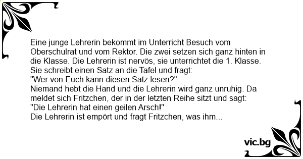 Niemand hebt die Hand und die Lehrerin wird ganz unruhig. Da meldet sich Fritzchen, der in der letzten Reihe sitzt und sagt: