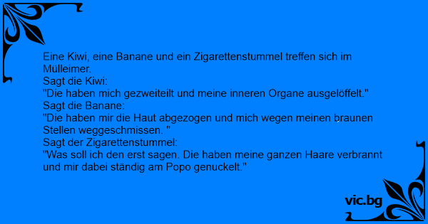 Eine Kiwi, eine Banane und ein Zigarettenstummel treffen sich im Mülleimer.