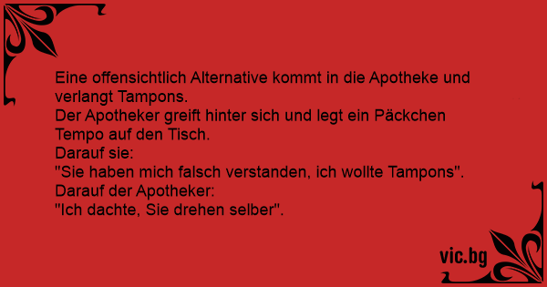 Eine offensichtlich Alternative kommt in die Apotheke und verlangt Tampons.