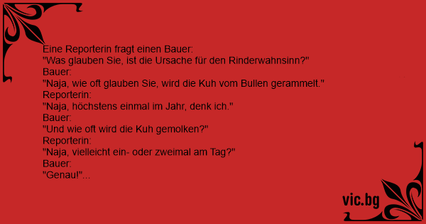 "Naja, wie oft glauben Sie, wird die Kuh vom Bullen gerammelt."