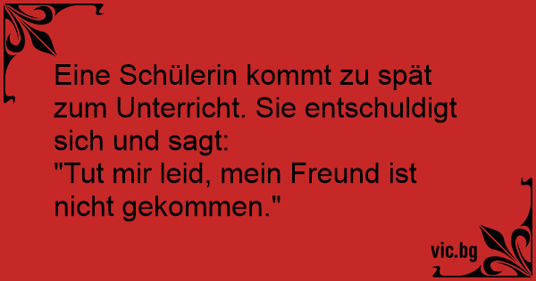 Eine Schülerin kommt zu spät zum Unterricht. Sie entschuldigt sich und sagt: