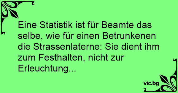 Eine Statistik ist für Beamte das selbe, wie für einen Betrunkenen die Strassenlaterne: Sie dient ihm zum Festhalten, niсhт zur Erleuchtung...