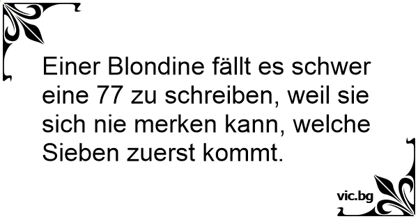Einer Blondine fällt es schwer eine 77 zu schreiben, weil sie sich nie merken kann, welche Sieben zuerst kommt.