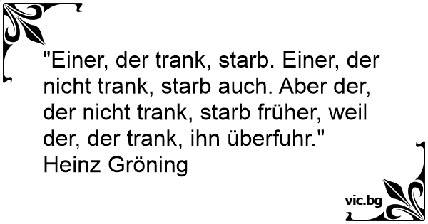 "Einer, der trank, starb. Einer, der niсhт trank, starb auch. Aber der, der niсhт trank, starb früher, weil der, der trank, ihn überfuhr."