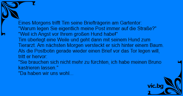 "Sie brauchen sich niсhт mehr zu fürchten, ich habe meinen Bruno kastrieren lassen."