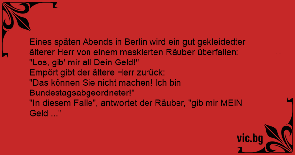 "In diesem Falle", antwortet der Räuber, "gib mir MEIN Geld ..."