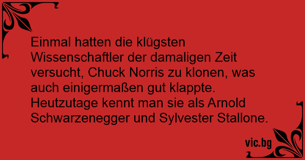 Einmal hatten die klügsten Wissenschaftler der damaligen Zeit versucht, Chuck Norris zu klonen, was auch einigermaßen gut klappte.