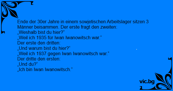 Ende der 30er Jahre in einem sowjetischen Arbeitslager sitzen 3 Männer beisammen. Der erste fragt den zweiten: