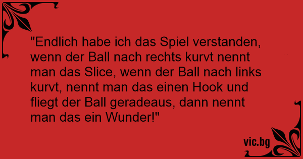 "Endlich habe ich das Spiel verstanden, wenn der Ball nach rechts kurvt nennt man das Slice, wenn der Ball nach links kurvt, nennt man das einen Hook und fliegt der Ball geradeaus, dann nennt man das ein Wunder!"