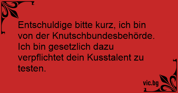 Entschuldige bitte kurz, ich bin von der Knutschbundesbehörde. Ich bin gesetzlich dazu verpflichtet dein Kusstalent zu testen.