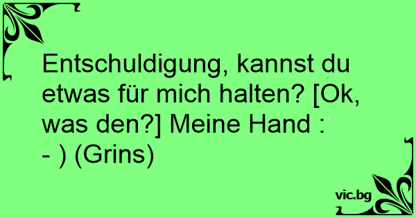 Entschuldigung, kannst du etwas für mich halten? [Ok, was den?] Meine Hand :