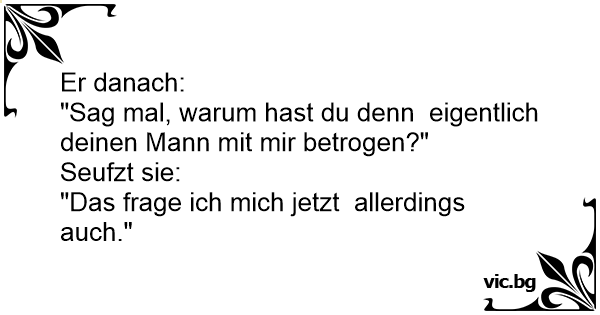 "Sag mal, warum hast du denn eigentlich deinen Mann mit mir betrogen?"