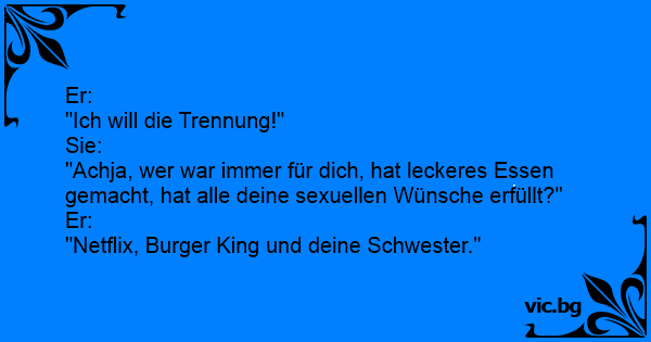 "Achja, wer war immer für dich, hat leckeres Essen gemacht, hat alle deine sexuellen Wünsche erfüllt?"