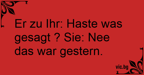 Er zu Ihr: Haste was gesagt ? Sie: Nee das war gestern.