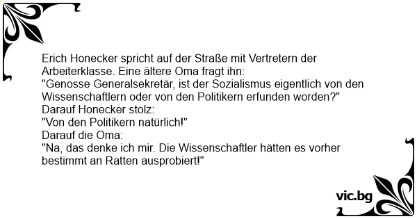 "Genosse Generalsekretär, ist der Sozialismus eigentlich von den Wissenschaftlern oder von den Politikern erfunden worden?"